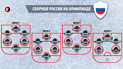 Сборная Россия опубликовала состав на ОИ по хоккею. Ниже представлена таблица звеньев .