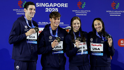Сборная США по плаванию побила мировой рекорд в финале смешанной эстафеты 4×100 метров вольным стилем на чемпионате мира по водным видам спорта в Сингапуре. Американские спортсмены преодолели дистанцию за 3 минуты 18,48 секунды. Предыдущий рекорд был установлен в 2023 году и принадлежал сборной Австралии — 3 минуты 18,83 секунды...