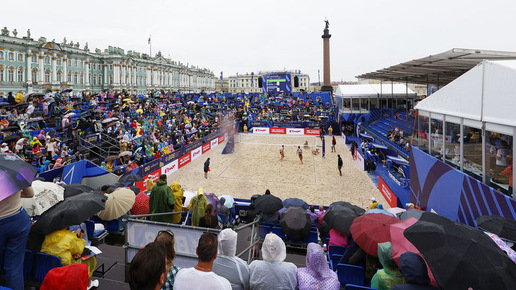 Пляжный волейбол на Дворцовой — это сказка! Даже дождь не помешал заполнить трибуны