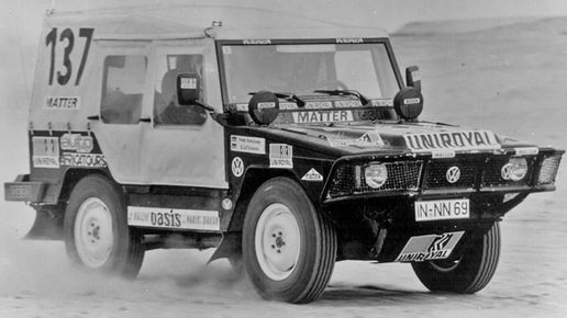 Первым победителем ралли "Париж- Дакар" среди легковых автомобилей стал серийный вседорожник, разработанный по заказу Бундесвера, Volkswagen Iltis, Короткая база, большие передний и задний свесы, высоко расположенный центр тяжести, узкая колея и малая мощность. Volkswagen Iltis (с немецкого «хорёк») был основным вседорожником в Бундесвере до появления Mercedes Wolf (Mercedes - Benz G-Class). Данный вседорожник стал преемником модели DKW Munga. Volkswagen Iltis Militärfahrzeug Военному заказчику...
