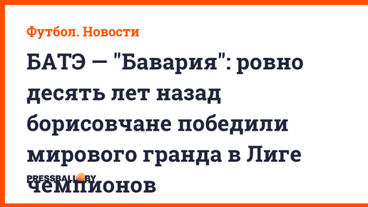 Ровно десять лет назад БАТЭ победил "Баварию" на минском стадионе "Динамо" со счетом 3:1. На минском стадионе "Динамо" 2 октября 2012 года прошла встреча БАТЭ с мюнхенской "Баварией" в рамках 2-го тура групповой стадии Лиги чемпионов. Вопрос об ожиданиях от этой игры задали всем, кому только можно было задать. Виктор Гончаренко перед матчем предупредил: пусть "Бавария" — гранд, но и БАТЭ не лыком шит. Юпп Хайнкес перестраховался в оценках, отметив удивительную победу борисовчан над "Лиллем"...