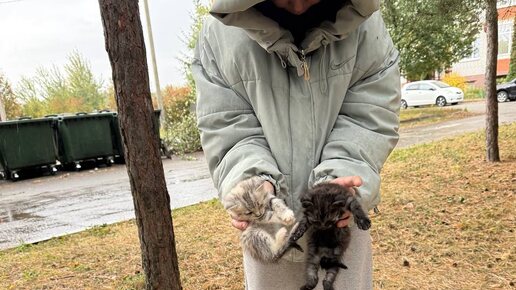 Погода уже удивительно промозглая, дождь, холод, а картонная коробка продолжала стоять. Стоять и мяукать… возле мусорки. Девушка, вышла вынести мусор и услышала мяуканье. Не прошла мимо, а открыла коробку - там в тряпках сидели два жалких крохотных котенка с залепленными воспаленными глазками. Она растерянно осмотрелась, перенесла коробку под ветки деревьев, чтобы хоть немного защитить их от непогоды и понять, что с ними делать дальше. Я узнала это место, где их нашла девушка - оно наводит на меня тоску...
