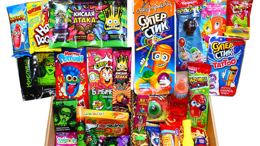 Это лично моё создание, которое оказалось сильно востребовано среди заказчиков!!!!! Бокс делится перегородкой на две половинки. Идея возникла не сразу, а вынашивалась постепенно, анализируя запросы наших клиентов. Подложки в половинки кладутся разного цвета. Где кисло -преобладает зеленый и желтый цвет, то есть кислотные тона ,а сладко- красный, розовый (голубой для мальчиков). Цена такого бокса из двадцати шести позиций продуктов составляет 1300 рублей. Но состав бокса меняется практически каждые 2-е недели, как заканчивается партия...