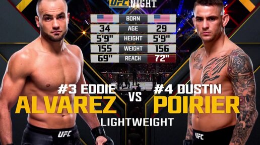 29 июля 2018 года в Калгари (Канада) прошёл очередной турнир UFC Fight Night, главным событием которого стало противостояние между бывшим чемпионом лёгкого дивизиона UFC американцем Эдди Альваресом (29-5-1) и его соотечественником Дастином Порье (23-5-1)...