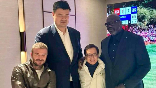 Бекхэм и Джеки Чан рядом с гигантами баскетбола На приватном мероприятии встретились четыре легенды из разных миров: Дэвид Бекхэм, Джеки Чан, Шакил О’Нил и Яо Мин. Футбол, кино и