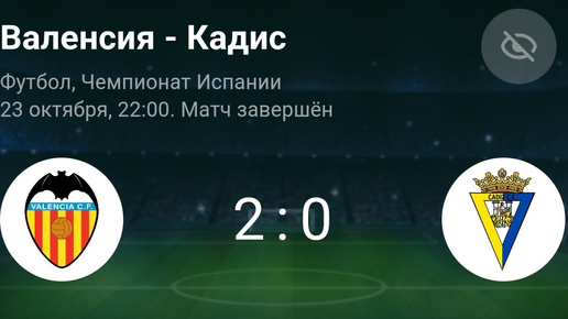 Всем привет. Рассмотрим заключительный матч 10 тура Чемпионата Испании по футболу. Валенсия на своём поле принимала Кадис. Здесь встречались команды, которые можно сказать не далеко находятся друг от друга в турнирной таблице. Перед стартовым свистком турнирное положение выглядело следующим образом. Валенсия 10 в таблице. Кадис получается ниже, 13. Жёлтая подводная лодка вернулась в Ла Лигу в 2020-ом году. Валенсия за всё это время ни разу не обыграла Кадис в очных матчах. Причём не дома, не на выезде...