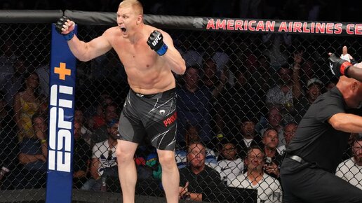 Американец Деррик Льюис последний раз выходил в клетку в феврале 2022 году, когда бешеная перестрелка с Таем Туйвасой закончилась для него плачевно - глухим нокаутом. Бой с Сергеем Павловичем начался с того, чем закончился бой с Туйвасой. С первых секунд Льюиса начали бить в лицо. Били сильно и больно. Выступления российских тяжеловесов в UFC летом нынешнего года оставляют ощущение недосказанности. Два месяца назад предъявлял претензии судье Жаирзиньо Розенстрайк, недовольный ранней, по его мнению, остановкой боя против Александра Волкова...