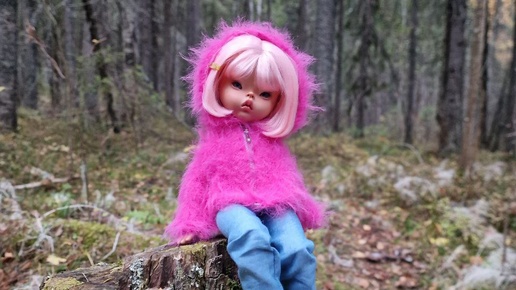 Выбрались на прогулку по осеннему парку. Наёни в новой меховушке. Попробовала пряжу с длиной ворса 14 мм. Короче лучше. Эта совсем искусственная.