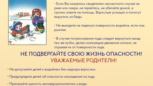 Памятка по правилам безопасности на льду : взрослые, помните об опасности, грозящей детям на льду!
