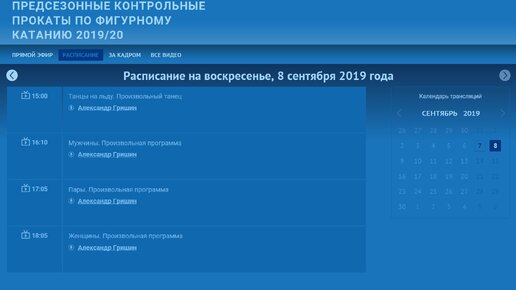 Расписание предсезонных контрольных прокатов по фигурному катанию 2019/2020