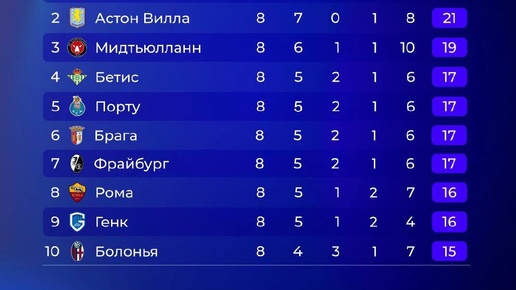 Смотрим на турнирную таблицу Лиги Европы