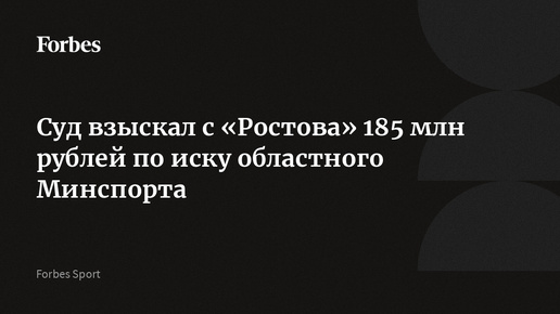 «Арбитражный суд решил: взыскать с акционерного общества футбольный клуб «Ростов» в пользу Министерства по физической культуре и спорту Ростовской области средства гранта в размере 168 458 700,00 руб., проценты за пользование чужими денежными средствами в размере 16 818 178,16 рублей. Взыскать в доход федерального бюджета государственную пошлину в размере 1 401 384,00 рублей», — говорится в тексте решения суда. «Ростов» может обжаловать решение суда в течение месяца в апелляционном порядке и в течение двух месяцев в кассационном порядке...