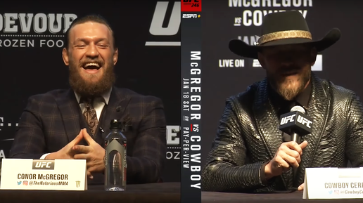 Сегодня в 4 утра по Москве состоялась пресс конференция бойцов, она получилась очень живой и насыщенной. Конор высказался про ковбоя как бойца, желании провести реванш с Мейвезером в боксе, прокомментировал бой Фергюсон - Нурмагомедов. История противостояния Конора и Дональда уходит в 2016 год, именно тогда они должны были подраться, но бой состоялся с Диазом. Магрегор потерпел поражение в полусреднем весе, сейчас он снова ставит все на кон и выступает в той же весовой! Полное видео пресс-конференции...