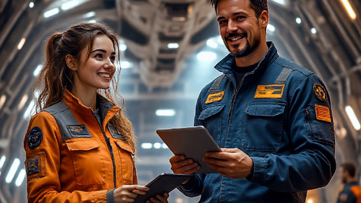Ремонтный ангар поражал своими масштабами — гигантская металлическая пустошь, где их «Возрожденец» смотрелся скромным, хоть и отважным островком в море ферм, лесов и свисающих с потолка манипуляторов. Корабль, стоял на массивных опорах, опутанный жгутами кабелей и шлангами. Воздух был насыщен знакомым ароматом озона, свежей сварки и смазки — родным для Игоря запахом прогресса. У подножия трапа корабля собрался весь экипаж. СВЕТА прислонилась к поручню, скрестив руки, но на её лице играла лёгкая, одобрительная улыбка...