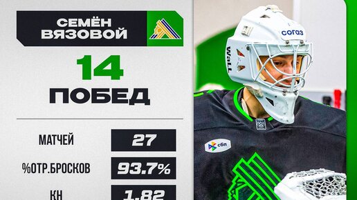 Понимаю, что есть потрясающий Иван Демидов, но и выступление Семёна Вязового заслуживает восхищения Молодой вратарь, драфтованный «Сиэтлом» под 163 номером в 2021 году, в этом сезоне провёл 27 матчей за «Салават Юлаев», в которых одержал 14 побед, из которых ещё в 5 сыграл на «0». А коэффициент надёжности при этом составил солидные 1.82 Семён не просто здорово исполняет функции бэкапа, но ещё и делает это на уровне лучших вратарей лиги. Например, по коэффициенту надёжности он идёт следом за Даниилом...