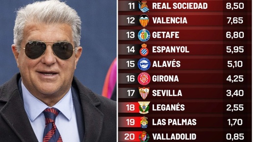 Почти неделю назад завершился сезон в Ла Лиге и испанское издание Marca опубликовало таблицу призовых. Теперь мы знаем, сколько заработали «Барселона», «Мадрид», «Атлетико» и остальные. Как чемпион, «Барса» смогла рассчитывать на целых 57,84 млн евро. Примерно за столько клуб купил из «Лидса» Рафинью Диаса. Обладатель второго места «Мадрид» пополнился на 51,03 млн...