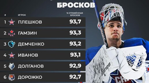 ⚡️🥅 Вратари сезона КХЛ по проценту отражённых бросков