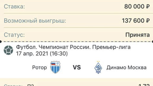 Мой уверенный прогноз на футбол Ротор - Динамо Москва 17.04.21