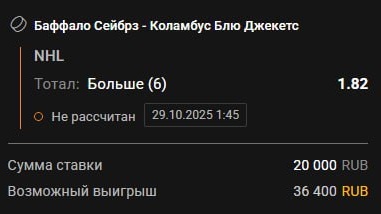🏒🏒🏒🏒🏒 🐃Баффало - 🔵Коламбус Встреча двух самых результативных команд прошлого сезона (матчи с их участием, Баффало 6.6 шайб за игру, Коламбус 6.4 шайбы), с тех пор ничего не поменялось, команды так же ставят на атакующий хоккей, потому что в обороне дыра и вратари не выручают...