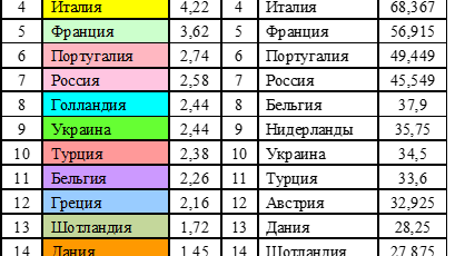 Приводится анализ четырнадцати национальных турниров - Англии, Испании, Италии, Франции, Германии, Голландии, Португалии, Турции, Бельгии, России, Греции, Дании, Украины, Шотландии. В таблицах национальных турниров представлено общее положение команд, по прошедшему сезону (итоговое положение команд в прошедшем сезоне на начало турнира с заменой выбывших команд по результату переходных игр на повышение в классе и согласно сменяемости команд в турнире). Рейтинги команд турниров УЕФА - Англии, Испании,...