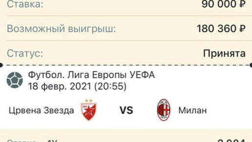 Мой прогноз на футбол Црвена Звезда - Милан 18.02.21