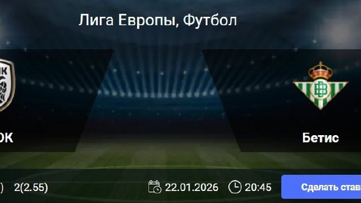 Статистика ПАОКа: В пяти из семи последних матчей ПАОКа в Лиге Европы было забито не менее четырех голов. На домашнем стадионе команда не проигрывает в рамках турнира уже пять встреч подряд (2 победы, 3 ничьи). В четырех из пяти предыдущих домашних игр Лиги Европы ПАОК не пропускал. Статистика Бетиса: В шести последних выездных матчах Лиги Европы «Бетис» не пропускал более одного гола...