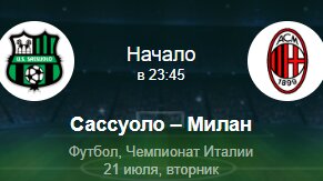 Прогноз на матч : Сассуоло vs Милан (21.07.2020)