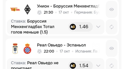 Разберём теперь футбольный экспресс на сегодняшние матчи в топ-лигах Европы 👇 ✅ ПСЖ-Страсбур Ставка: Тотал больше 2.5 голов ТБ 2.5 голов сыграл в 9 из 10 последних очных матчей этих команд в чемпионате Франции ✅ Унион-Боруссия Мёнхенгладбах Ставка: Боруссия Мёнхенгладбах, ТМ 1...