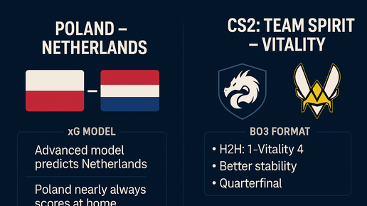 Мир спортивных прогнозов стремительно меняется. Если ещё несколько лет назад аналитика в основном сводилась к «форме команд» и «личным встречам», сегодня ключевую роль играют данные, xG-модели, продвинутые метрики, машинное обучение и мультиспортивные подходы. Именно на этой идее построен мультихаб StavkaGPT — пространство, которое объединяет прогнозы на футбол, хоккей, теннис, киберспорт и многое другое. Эта статья собрала в себе сразу два актуальных прогноза: — матч Польша — Нидерланды в рамках...