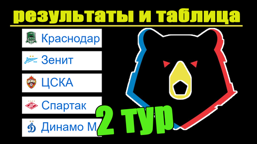 Чемпионат России по футболу. 2 тур. Результаты, таблица, расписание.
