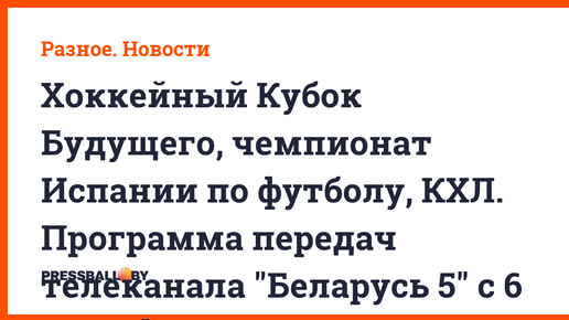 Хоккейный Кубок Будущего, чемпионат Испании по футболу, КХЛ. Программа передач телеканала "Беларусь 5" с 6 по 12 февраля 2023 года