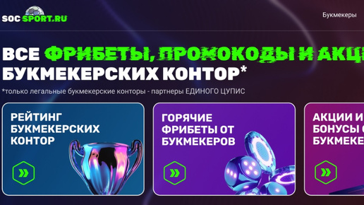 Москва, 2025 — Запущен SocSport.ru — портал о ставках на спорт, который объединяет в одном месте всё, что нужно игроку: подборки актуальных фрибетов за регистрацию, промокоды букмекерских контор, независимый рейтинг легальных БК, обзоры операторов и практический гид по ответственным ставкам. Проект создан как удобная стартовая точка для новичков и как ежедневный помощник для опытных бетторов. Единое окно бонусов и промо. На главной странице SocSport.ru собраны главные предложения рынка: бездепозитные...