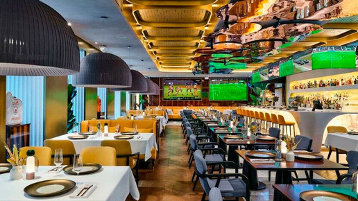В оживлённой Москве спортивные бары — невероятный центр притяжения любителей спорта и, в частности, футбола, желающих разделить эмоции с единомышленниками. Столица богата на места, где фанатские страсти соседствуют с изысканными блюдами и широким ассортиментом напитков. Собрал для вас пять мест в Москве, где можно посмотреть футбол на большом экране, — от спортивных пабов в английском стиле до гастробаров для гурманов. Сохранить на Картах Адрес: Украинский бул., 15