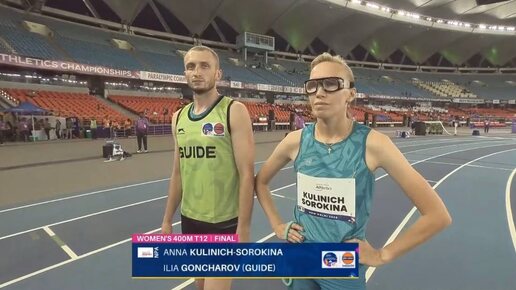 🔥Какой невероятный финиш на чемпионате мира по лёгкой атлетике! На последних метрах дистанции в беге на 400 метров в классе T12 Анна Кулинич-Сорокина со своим спортсменом-ведущим Ильёй Гончаровым вырвала победу и заняла первое место, опередив серебряного призёра всего на 0,01 секунды...