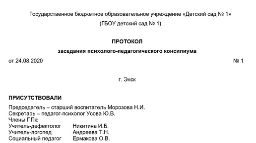 Используйте готовые образцы протоколов по итогам первых заседаний ППк, чтобы оперативно зафиксировать цель выступающих по каждому вопросу и принятые решения. В статье вы можете внести свои данные и распечатать готовые документы. Проведите в начале учебного года оперативные заседания ППк. По итогам встреч оформите протоколы. Чтобы отразить ход заседаний, вопросы из повестки дня и решения, которые по ним приняли члены ППк, придерживайтесь утвержденной ГОСТ Р 7...