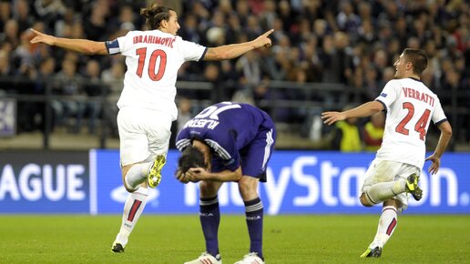 10 место / Златан Ибрагимович / «Андерлехт» – «Пари Сен-Жермен» Открывает топ-10 лучших голов в истории футбола Златан Ибрагимович. 23.10.2013 состоялся матч между клубами «Андерлехт» и «Пари Сен-Жермен». В результате неудачной попытки игрока «Пари Сен-Жермен» выбить мяч, инициативу перехватил нападающий «Андерлехта». Недолго думая Златан Ибрагимович с одного касания, с разбегу нанес сокрушительный удар, забив гол в ворота соперника. Ему удалось забить третий гол и обеспечить команде гарантированный проход в УЕФА...