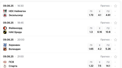 🔥 Новый сезон в Эредивизи уже в деле! Сегодня играют фавориты — Фейеноорд и ПСВ Эйндховен. Но и другие матчи обещают жару. Держи быстрый разбор и ставки, которые могут принести профит! 😎 ⚡ НЕК — Эксельсиор Обе команды обожают атаковать и порой забывают про оборону. В прошлом сезоне они регулярно обменивались голами — тренд явно на стороне “обе забьют”. Сезон только стартует, а шансы на голы обеих команд очень высоки. 🎯 Ставка: обе забьют (да). ⚡ Фейеноорд — Бреда Фейеноорд в отличной форме и собирается доминировать у себя дома, а атака Бреды пока оставляет желать лучшего...