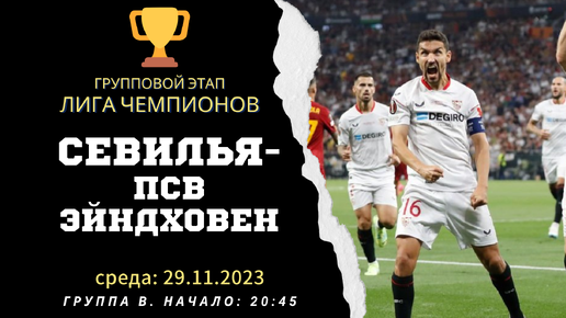 🏆 Лига Чемпионов ⚽️ Севилья - ПСВ Эйндховен прогноз на матч 29.11.2023, Групповой этап, Группа B, 5 тур. ⏰ Начало: 20:45