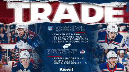 Райан Линдгрен и Джимми Веси, бывшие игроки «Нью-Йорк Рейнджерс», переходят в «Колорадо Эвеланш». В обмен на Веси и Линдгрена «Рейнджерс» получат Юусо Пярсинена, Келвина де Хаана и два будущих выбора на драфте. «Рейнджерс» сохраняют за собой половину суммы в 4,5 миллиона долларов, оставшейся по истекающему контракту Линдгрена. Линдгрен провел за «Рейнджерс» все 387 матчей в регулярном чемпионате с тех пор, как команда задрафтовала его в 2016 году. У Веси, который отыграл в составе «Рейнджерс» шесть...