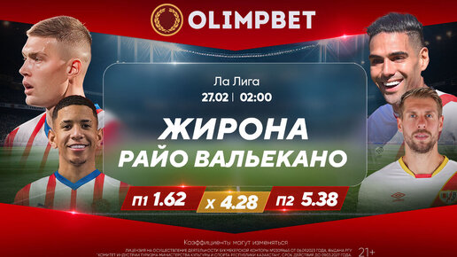Топ-матчи вторника испанской Примеры и Серии А – в коэффициентах Olimpbet. Ла Лига. 26-й тур. «Жирона» – «Райо Вальекано». 27 февраля, 02:00 (время Астаны) В минувшем туре Примеры «пчелы» дали шанс «Жироне» сократить отставание от «Реала». Они сенсационно сыграли вничью с лидером чемпионата в мадридском дерби (1:1). Но каталонцы этим подарком от «Райо» не воспользовались. Они уступили в Бильбао «Атлетику» (2:3) и отпустили «королевский клуб» в шестиочковый отрыв. А буквально на этих выходных «Жирона» и вовсе опустилась на третье место в таблице...