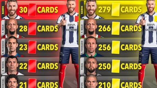 🇪🇸 Рамос является лидером по желтым и красным карточкам в 21 веке - даже Пепе далеко позади
