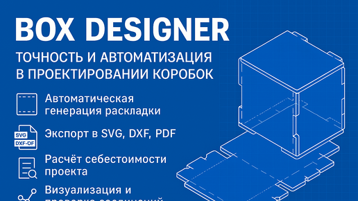 Box Designer В мире CNC‑обработки и лазерной резки точность соединений играет ключевую роль. Даже малейшее смещение шипа или проушины может привести к перекосу конструкции или потере прочности. Программа Box Designer создана именно для того, чтобы избавить мастеров от подобных проблем и превратить проектирование в удобный и быстрый процесс. Что умеет Box Designer Автоматическая генерация раскладки Пользователь задаёт длину, ширину, высоту и толщину материала — программа строит все панели с учётом соединений...