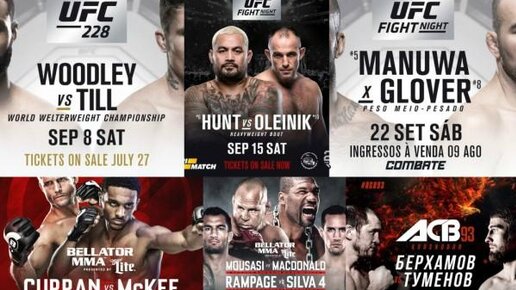 Уже 8-го сентября нас ожидает сразу два крутых ивента. Сначала в России промоутерская компания ACB организует свой 93 вечер, который на этот раз пройдёт в Краснодаре, и возглавит его противостояние двух российских полусредневесов Мухамеда Берхамова и Альберта Туменова за пояс чемпиона организации. А затем в США самая популярная MMA-лига в мире смешанных единоборств проведёт событие UFC 228, где скрестят перчатки одиозные Тайрон Вудли и Даррен Тилл. На кону сего боя будет стоять звание чемпиона в полусреднем весе...