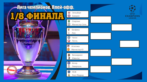 В Лиге Чемпионов завершились ещё два матча 1/8 финала. Расскажу о результатах, расписании и о том, отберут ли у Санкт-Петербурга финал. Чемпион турнира Челси посрамил 11-ю команду Франции Лилль 2:0. Победитель Лиги Европы Вильярреал усыпил Ювентус 1:1. Обе команды находятся за пределами первой тройки в своих чемпионатах. Другие результаты: Мы узнали 6 результатов 1/8 финала. В среду 23 февраля Бенфика примет Аякс, Атлетико встретится с Манчестером Юнайтед...