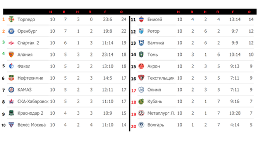 Футбол России. ФНЛ. 10 тур. Результаты, расписание, таблица.