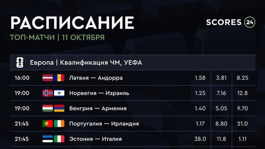 Расписание матчей на сегодня! ⚽️ 📅 Венгрия - Армения Пока рано судить о возвращении армян в игру, но после матча с Ирландией они показывают прогресс. Венгрия же переживает спад с результатами и кадровыми потерями. Ожидаем динамичный матч с забитыми мячами. Финальный счёт: 2:1 в пользу Венгрии. Ставка редакции: обе забьют (да). 📅 Норвегия - Израиль Норвегия — фаворит встречи, с мощной атакой в лице Холланда и Сёрлота. Израиль, несмотря на достойное сопротивление, испытывает проблемы в обороне...