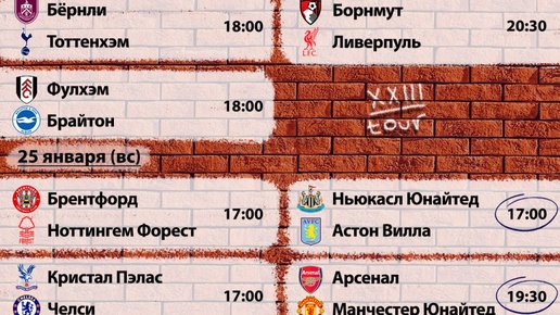 Расписание матчей 23-го тура АПЛ