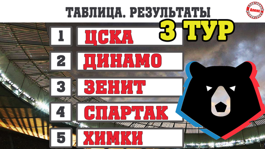 Чемпионат России по футболу. 3 тур. Результаты. Расписание. Таблица.