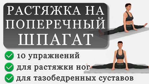 Упражнения на поперечный шпагат необходимы не только для безопасной подготовки мышц и связок к выполнению этого сложного и красивого элемента. Растяжка на поперечный шпагат предупреждает варикоз, улучшает форму ног, развивает силу мышц, раскрывает тазобедренные суставы, является профилактикой заболеваний мочевыделительной системы. 10 упражнений для поперечного шпагата Тренировки на шпагат обычно начинают с практики продольного шпагата, поскольку он, как правило, дается легче и требует меньше времени на освоение чем поперечный шпагат...