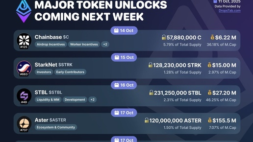 DropsTab: крупнейшие разблокировки в токенах на этой неделе